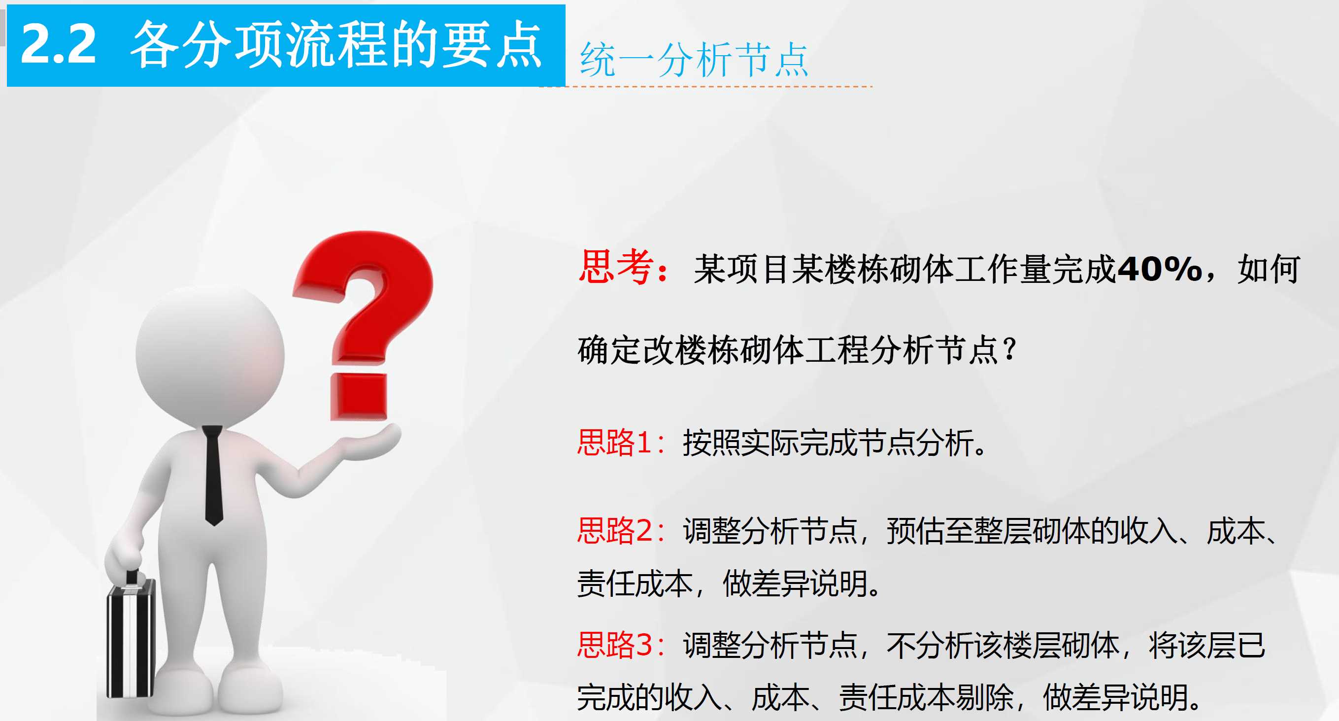 【资料简介】本资料为某知名施工企业编写的如何做好成本分析,共55页供大家学习及工作中参考。更多有关工程成本测算分析及成本管理的干货资料详见:点我查看